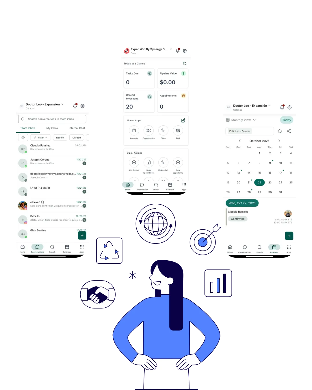 Desde llamadas inteligentes con IA hasta reservas en línea y pagos automáticos, Expansión trabaja 24/7 para manejar tus tareas repetitivas, mientras tú te enfocas en atender a tus pacientes.
